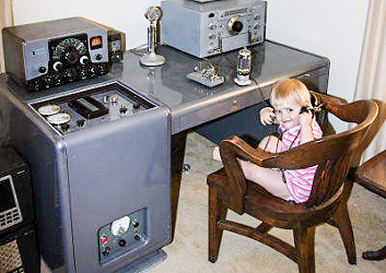 The photo is of daughter Anna inspecting my Ranger/Desk KW/HRO-50 station shortly after it was put into operation.